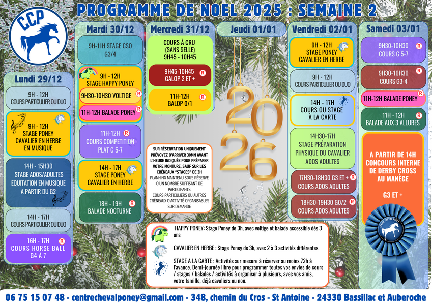 A cheval pendant les vacances de Noel : découvrez le programme du CCP pour les deux semaines à venir