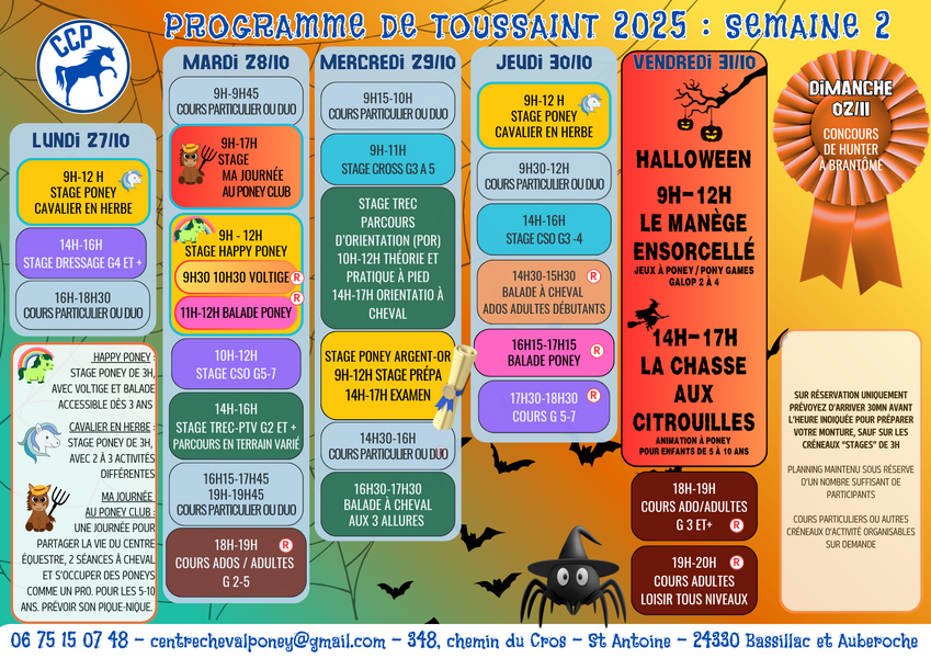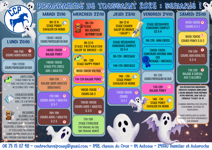 Vous aviez peur de vous ennuyer pendant les vacances de Toussaint ? Venez donc faire un tour au CCP ! Pour tous les cavaliers et toutes les envies.